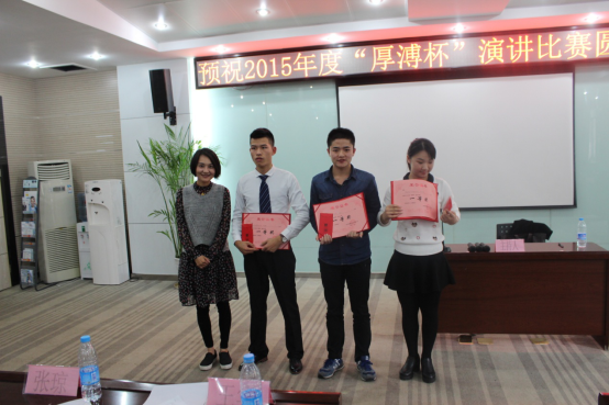 2015“厚溥杯”演講比賽由武漢厚溥教育科技有限公司技術(shù)中心主辦,技術(shù)中心于2015年10月初開始組織策劃,參賽學(xué)校及對象由荊州職業(yè)技術(shù)學(xué)院、湖北國土資源職業(yè)學(xué)院、湖北科技職業(yè)學(xué)院、武漢工程職業(yè)技術(shù)學(xué)院、黃岡職業(yè)技術(shù)學(xué)院、武漢外語外事職業(yè)學(xué)院、湖北三峽職業(yè)技術(shù)學(xué)院、武漢軟件工程職業(yè)學(xué)院、河南水利與環(huán)境職業(yè)學(xué)院、河南信息統(tǒng)計學(xué)院10所院校的在校學(xué)生組成,各校區(qū)于11月2號之前進行內(nèi)部選拔,最終每個校區(qū)確定3名選手參加11月6號在光谷總部組織的最后的總決賽。