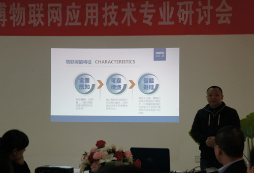 參加本次研討會的學(xué)校嘉賓有:荊州職業(yè)技術(shù)學(xué)院副院長方風(fēng)波、教務(wù)處處長詹永東、校企合作與就業(yè)處處長湯欽林、國際信息技術(shù)學(xué)院常務(wù)副院長蔡波以及信息技術(shù)系專業(yè)教師;湖北國土資源職業(yè)學(xué)院副院長周從軍、信息技術(shù)系主任管勝波、信息技術(shù)系書記馮越;黃岡職業(yè)技術(shù)學(xué)院電子信息工程學(xué)院院長羅幼平、物聯(lián)網(wǎng)教研室主任李敏;湖北三峽職業(yè)技術(shù)學(xué)院電子信息工程學(xué)院院長李建利、電子信息工程學(xué)院副院長秦工、電子信息工程學(xué)院專業(yè)教師鄒志龍;武漢厚溥教育科技有限公司副總經(jīng)理黎祝明、技術(shù)總監(jiān)翁高飛、物聯(lián)網(wǎng)專業(yè)負(fù)責(zé)人李杰、專業(yè)研究員涂建以及各合作學(xué)校的學(xué)術(shù)經(jīng)理、物聯(lián)網(wǎng)專業(yè)老師等。