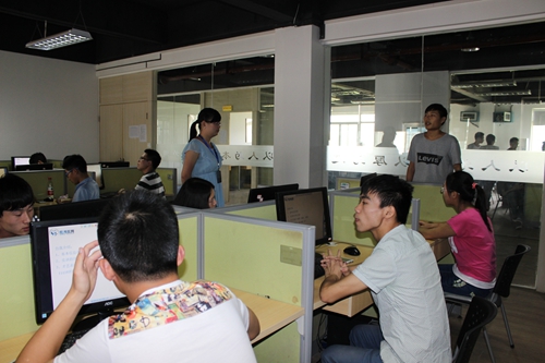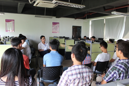在“職業鮮體驗”的課tang上,實訓督導老師給同學們講了公司有關制度和實訓的注意事項,還跟各位同學傾心交談,了解他們的具體需求。同學們則把自己的職業困惑和做項目時遇到的技術難題等向老師表達,希望在此次實習實訓中得到有效的提升。在一片歡快的氣氛中,接著督導老師帶領同學們參觀了厚溥實習實訓基地——光谷軟件園。