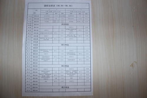 實習實訓課程安排表