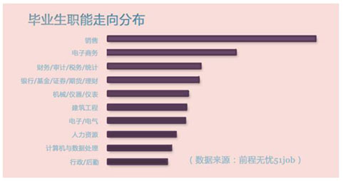 就業問題總是被歸結為“匹配”問題,學生想要的和企業需要的并不一致。《2014畢業生就業狀況》顯示,校園招聘的雇主們招聘最多的職能前三分別是銷售、客戶服務、金融/投資等。而在專業選擇上,企業職位需求量最大的專業集中在財務/金融,管理貿易,通信電子,計算機科學/網絡,機電/自動化。在理工科類大學,招聘職位多來自計算機軟件、工程建設和汽車零配件行業,在偏文科的綜合大學,雇主也多來自快速消費品、金融/投資和互聯網行業。從數據上看,理工科的學生就業率更高。
